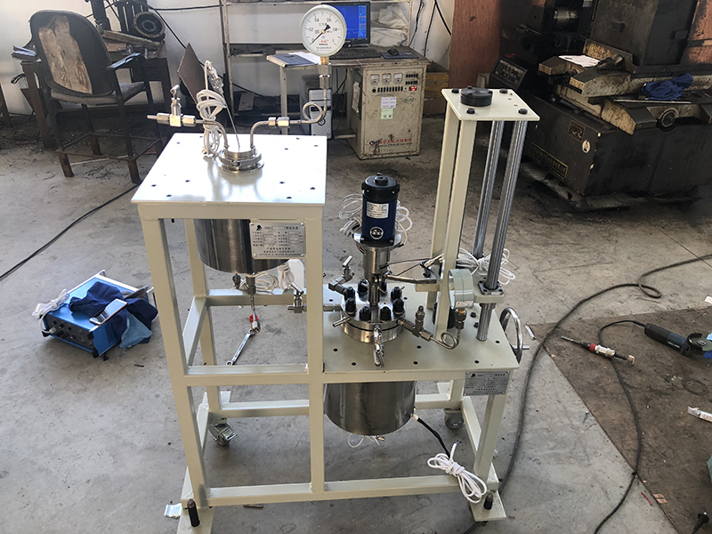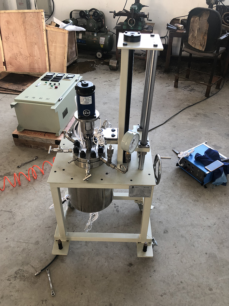 我公司為上海地區(qū)客戶制作的1L成套反應(yīng)釜。設(shè)備由兩臺(tái)反應(yīng)釜組成,一臺(tái)為無(wú)攪拌快開(kāi)裝置,第二臺(tái)采用磁力驅(qū)動(dòng)攪拌器配錨式+推進(jìn)攪拌槳葉,設(shè)計(jì)溫度300℃,設(shè)計(jì)壓力為12.5MPa。制造材質(zhì)為哈氏合金C-276。攪拌轉(zhuǎn)速達(dá)1000r/min??刂葡到y(tǒng)配備壓力傳感器及上微機(jī)軟件。